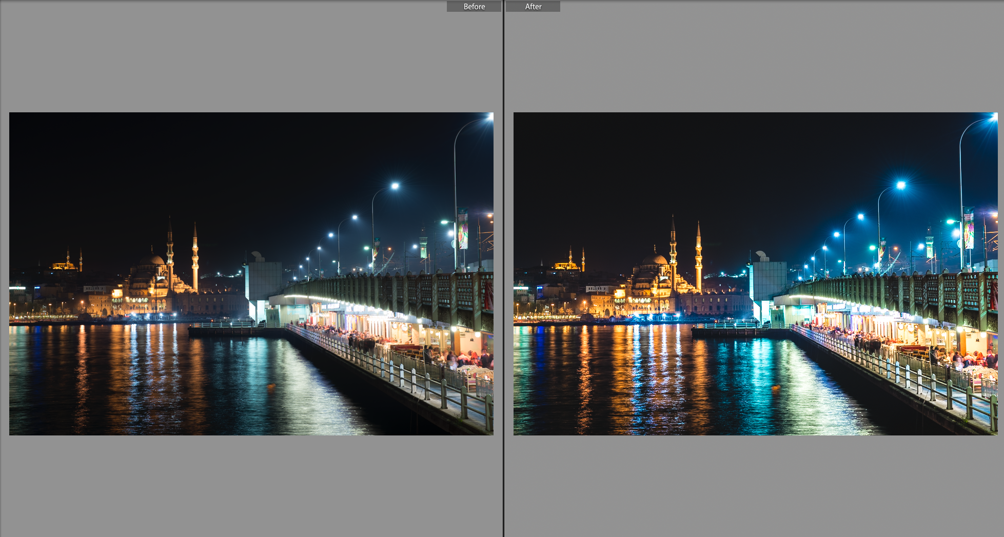 Next stop Turkey, Istanbul for a photo across the bridge looking over towards the red mosque known as Sophia. In this photo, I wanted to capture the streaks of lights from the opposing side of the river. The photo initially came out pretty well but using the PUNCHY preset with a few adjustments to the RGB done curve and slight reduction in saturated oranges I got to the images on the right. The Image has been sharpened using the POLISH preset and with a bump in the clarity, I'm really happy with the results.
